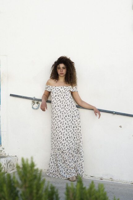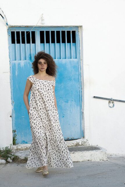 • Ριγέ λευκό- γαλάζιο φόρεμα