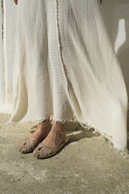 • Διαθέτει μακριά μανίκια με βολάν στο τελείωμα